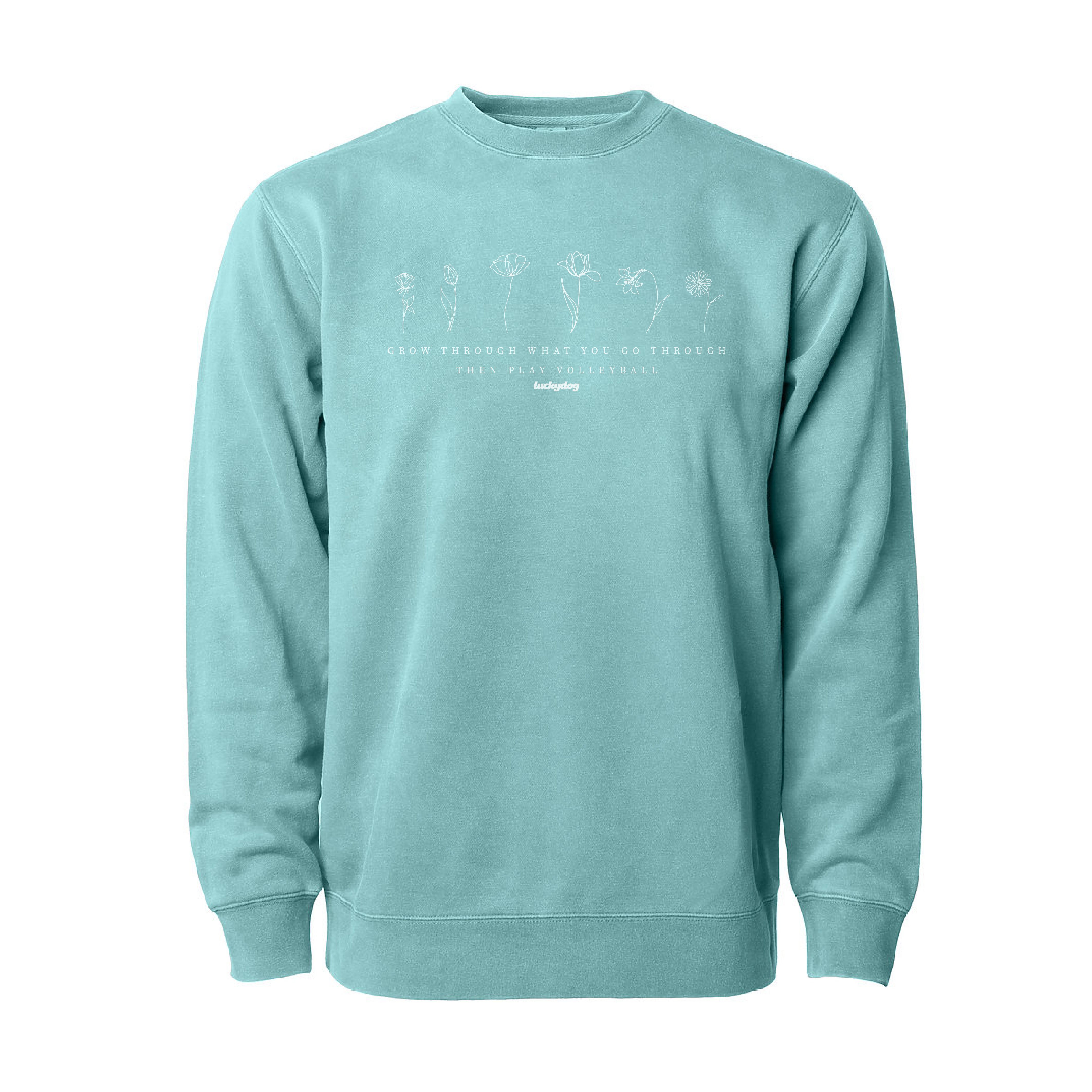 The Growing Pains Crew in mint is a soft and subtle Lucky Dog fan favorite. This piece serves fabulous function for our passionate Volleyball fans, and seasoned Volleyball athletes alike. A lesson for all ages "Grow through what you go through, then play volleyball". This perfect player piece boasts ring spun cotton with a standard fit and twill neck tape, plus ribbing at the cuffs and waistband for a pup perfect fit. Make sure to check out our trending accessories, as you aim to complete your look.